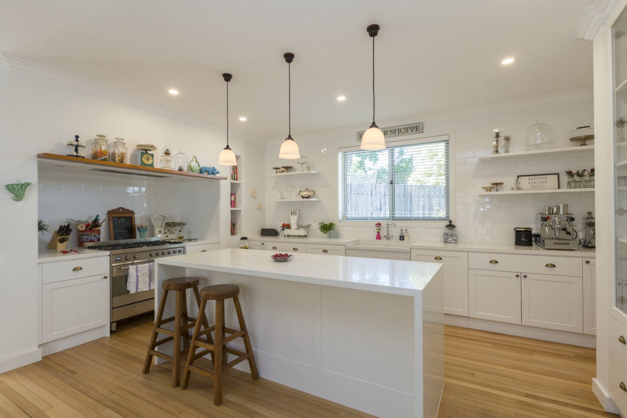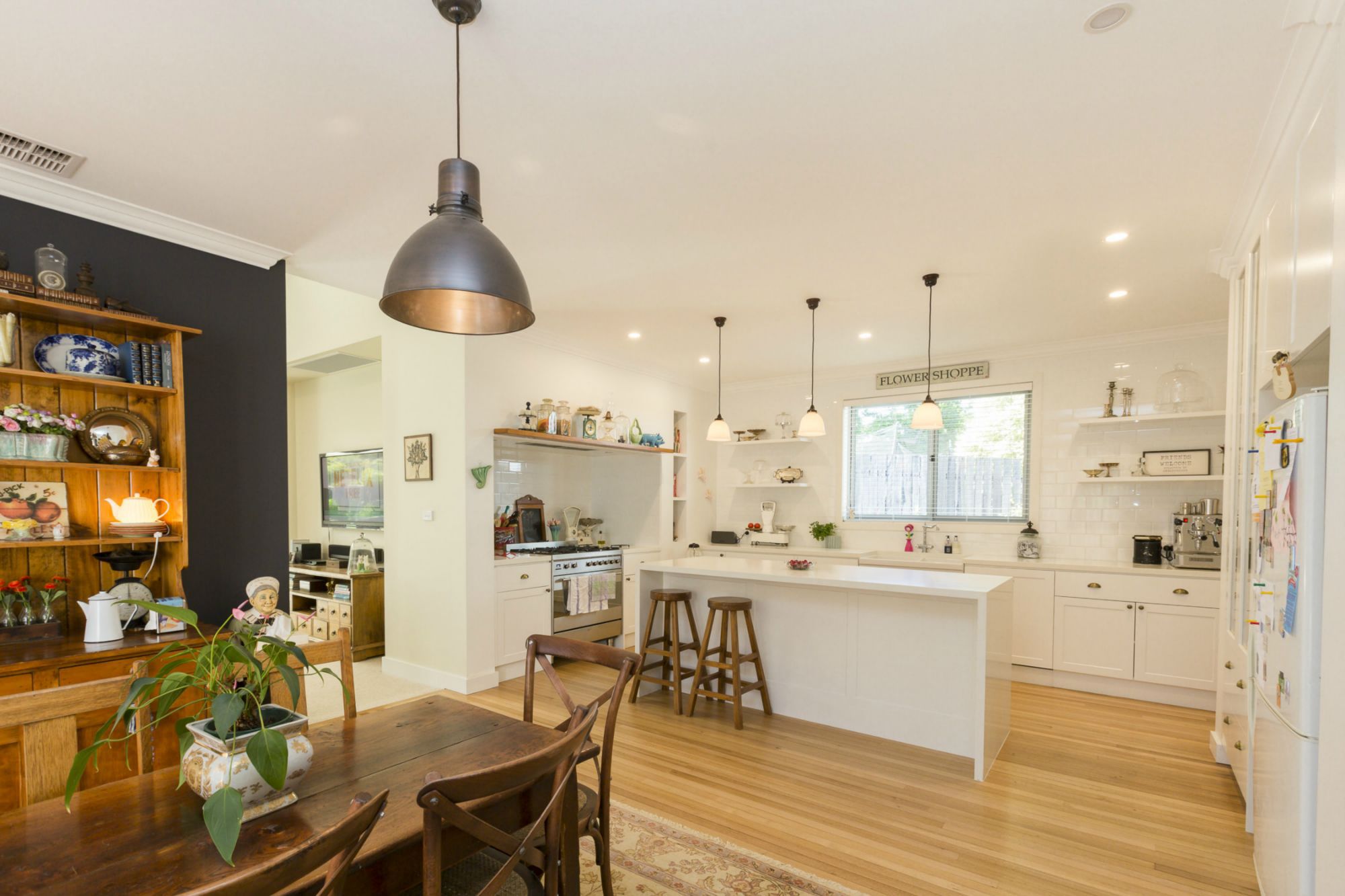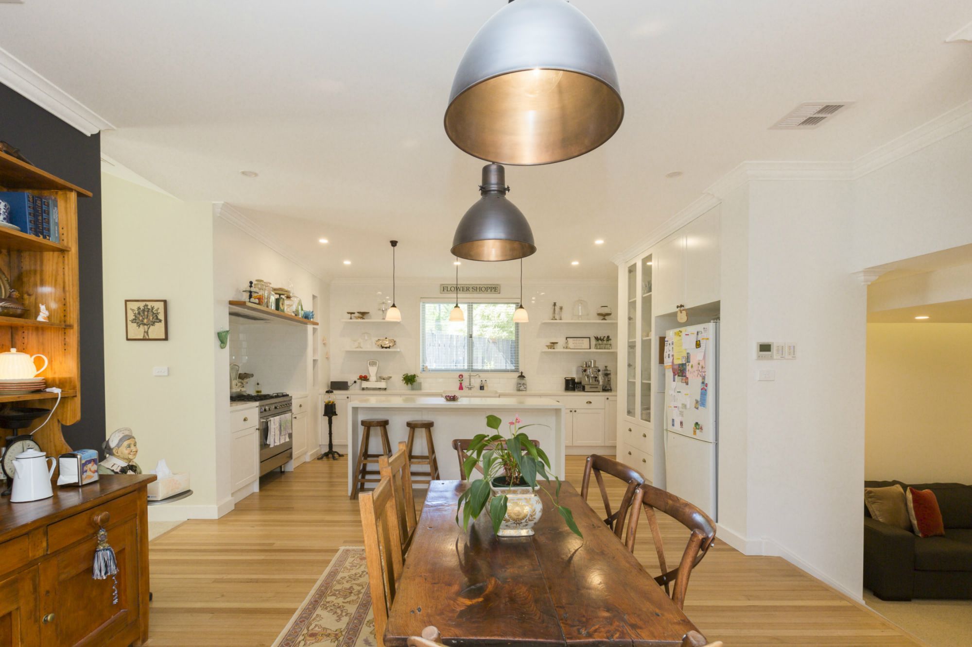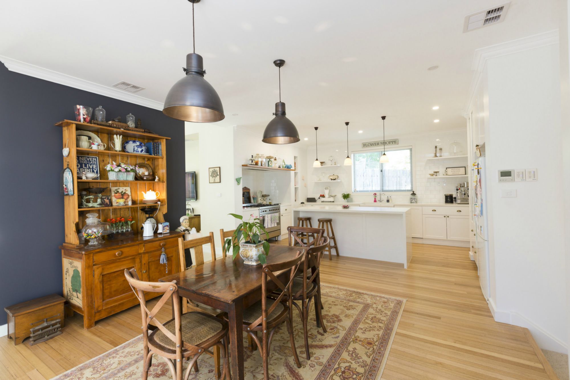 * Open plan kitchen/ family room with recycled timber floorboards from the old Lyneham Squash Courts.