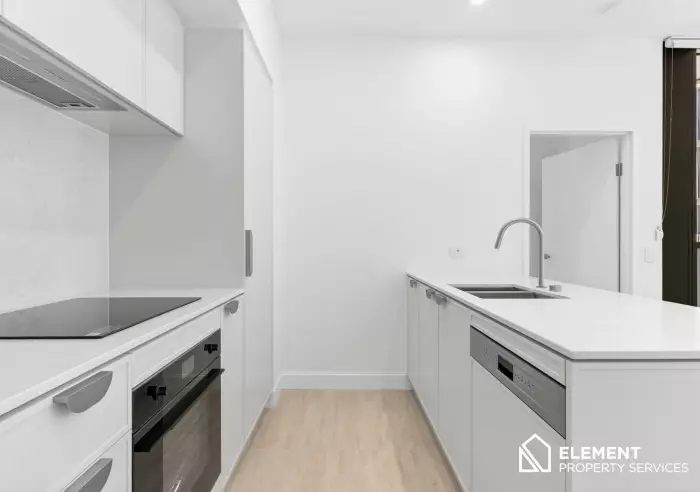 Designed with elegance and functionality in mind, this brand new two-bedroom apartment showcases refined contemporary living. Floor-to-ceiling, double-glazed curved windows flood the home with natural light while framing impressive views. The sleek kitchen is both stylish and practical, featuring SMEG appliances, an integrated dishwasher, electric cooking, and striking marble-inspired benchtops and splashback, all complemented by crisp white cabinetry.