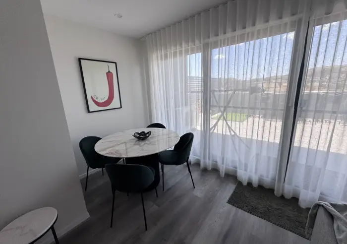 Downstairs, the open-plan living and dining area forms the heart of the home. Filled with natural light, this expansive space flows effortlessly to the large private terrace — perfect for entertaining or simply enjoying the outlook across Taylor. The living zone is versatile and spacious, ideal for both relaxation and hosting.